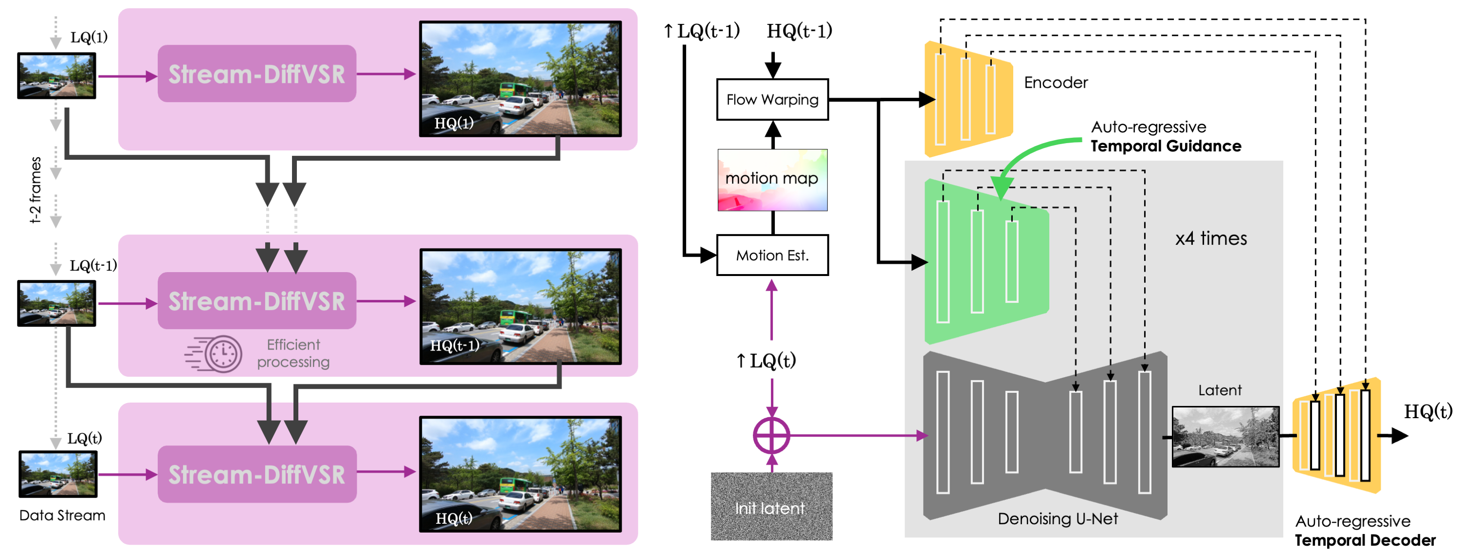 Reformulates VSR as an autoregressive-one-step-diffusion paradigm, which enables streaming inference.